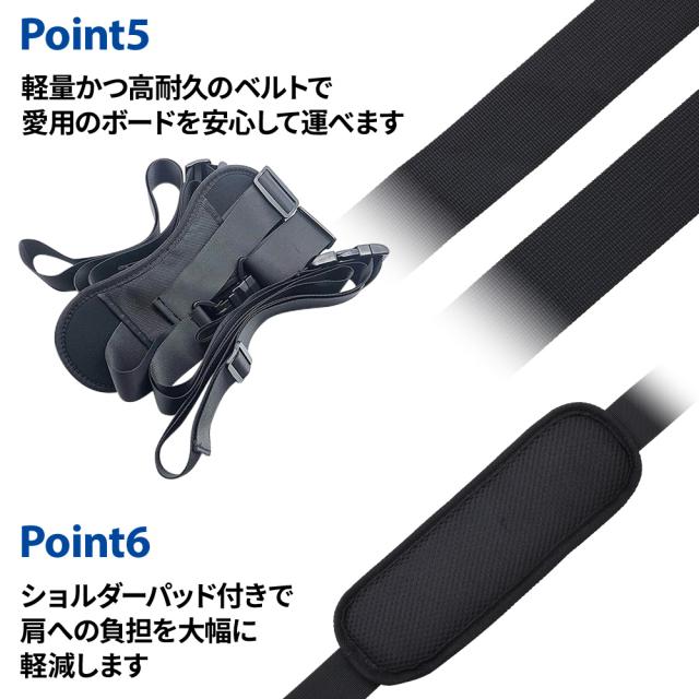 ■軽量かつ高耐久のベルトで愛用のボードを安心して運べます。