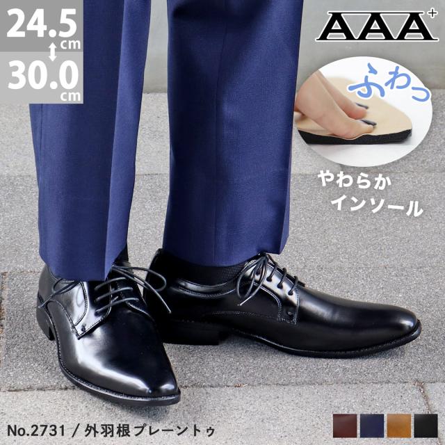 ビジネスシューズ メンズ 大きいサイズ 外羽根 プレーントゥ 革靴 レザー No.2731 24.5-29cm 30cm 黒 AAA+ サンエープラス 273
