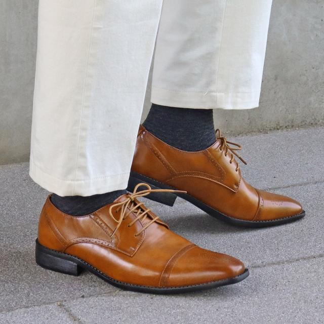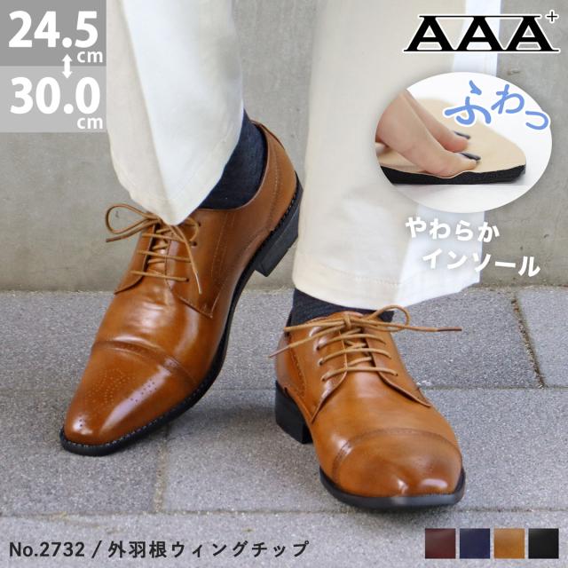 ビジネスシューズ メンズ 大きいサイズ 外羽根 ウィングチップ 革靴 インソール No.2732 24.5-29cm 30cm 黒 AAA+ サンエープラス 273