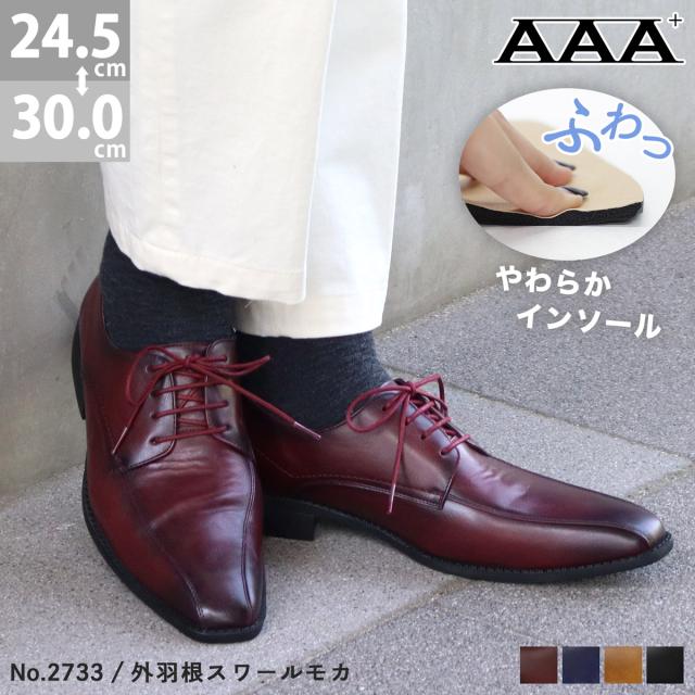 ビジネスシューズ メンズ 大きいサイズ 外羽根 スワールモカ レザー インソール No.2733 24.5-29cm 30cm 黒 AAA+ サンエープラス 273