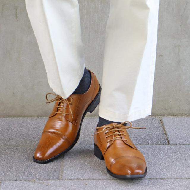 W型のキャップが切り替えられており、穴飾り(ブローグ)が施されている外羽根ウィングチップ。
