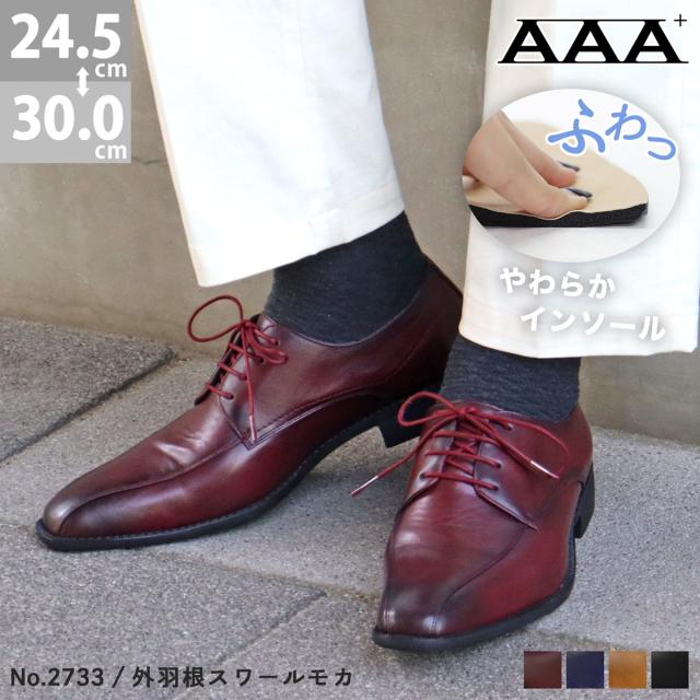 ビジネスシューズ メンズ 大きいサイズ 外羽根 スワールモカ 革靴 No.2733 24.5-29cm 30cm 黒 ブラック AAA+ サンエープラス 273
