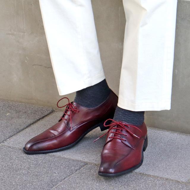 縦に入った2本のラインが足元を引き締め、オン・オフどちらでも活躍できるスタイリッシュな外羽根スワールモカ。