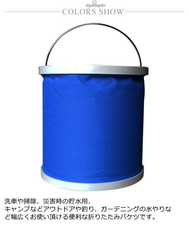 | 折りたたみ式 洗車、掃除、キャンプ、釣り等多用途のバケツです。容量たっぷり11リットルの折りたたみ式バケツです。 洗車や掃除、災害時の貯水用、キャンプなどアウトドアや釣り、ガーデニングの水やりなど幅広くお使い頂ける便利な折りたたみバケツです。 バケツの取っ手を持って回しながら上に引っ張ると広がります。広げた時の高さは約27.5cmで、水の量が満杯でも少量でも、無くても自立します。 ソフトなPVC素材です。バケツの底は丈夫なプラスチックです。 折り畳みは簡単、軽くて、旅行先に、スペースを節約し、バッグや車を保管したり運んだり、水を節約したり、砂や雑草を集めるのに便利です。このバケツは車のトランクの片隅、あるいは登山袋に入れることができます。 キャンプ、ピクニック、ハイキングなどに理想的コンパクトに折りたためて持ち運びも便利です。使わないときはコンパクトに折りたためます。また、車に積んでおくと、アウトドアやとしても重宝します。製品は軽いですから、旅行、徒歩などに適用します。 | |