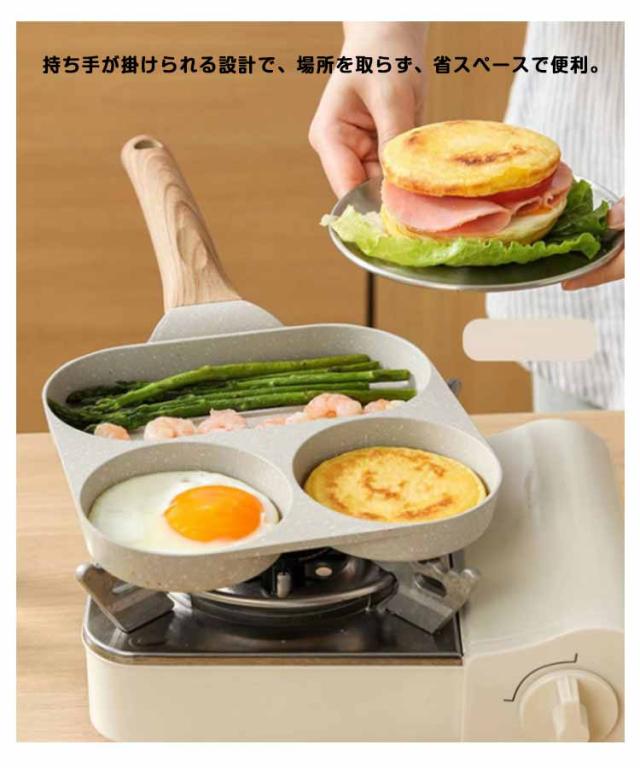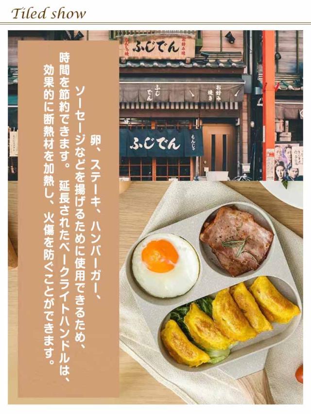 ステーキ フライパン IHフライパン ガスフライパン 送料無料 仕切り 壁掛け 麦飯石 四孔鍋 三孔鍋 火式 焦げ付きにくい 仕切りフライパン IH対応 お弁当 ガス対応 弁当作り キャラ弁 型 朝食作り IH IH対応