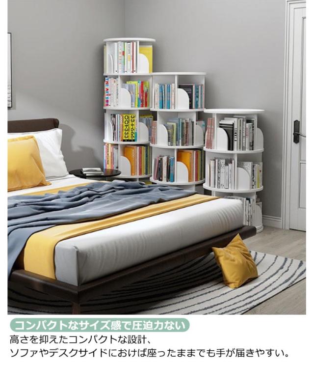 | 【省スペースながら大容量】直径40cmのスリム設計、リビングのコーナーなど狭い場所にも気軽に設置OK♪4段の大容量、毎日をちょっと楽しくしてくれる本は漫画本、小説、雑誌、お子さん用の絵本などを一箇所に集め、スペースをとらずに収納できる本棚。 【360度回転式】台座はベアリング入りで回転がとってもスムーズ。くるくる360度回せば、欲しいアイテムがすぐ目の前に現れ、何かどこにあるのか一目瞭然、探し物もラクラク。 【コンパクトなサイズ感で圧迫力ない】高さを抑えたコンパクトな設計、ソファやデスクサイドにおけば座ったままでも手が届きやすい。 【デザイン性と実用性兼備の逸品】A4、B5、文庫など様々なサイズが収めることができる回転式本棚。転落防止の設計で、くるくる回しても安心。お部屋の中がスッキリ! | |