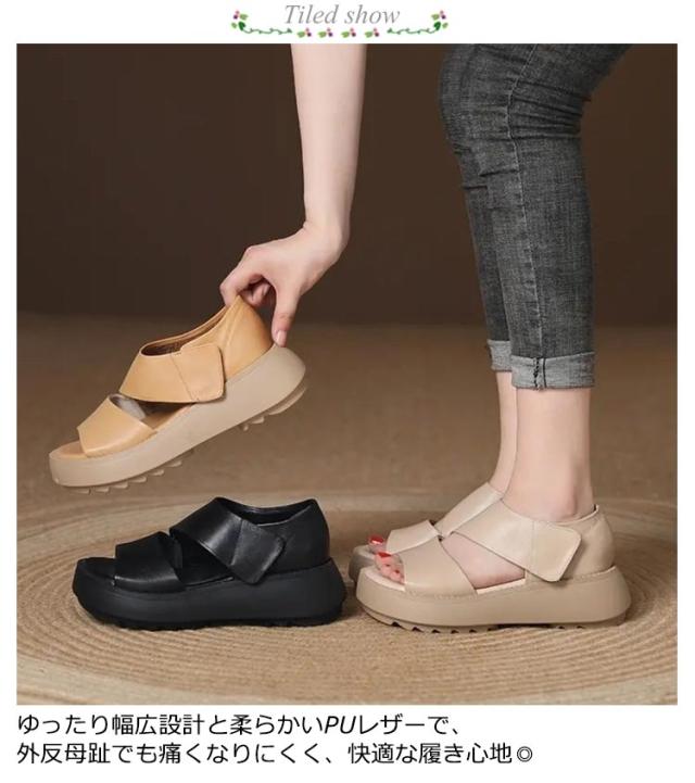 | エレガントでもカジュアルでもコーデしやすいサンダル。 ゆったり幅広設計と柔らかいPUレザーで、外反母趾でも痛くなりにくく、快適な履き心地◎ 安定感抜群の厚底。4.5cmのヒールで身長アップ。 マジックテープで履き脱ぎラクラク。 美しく立ち快適に歩く、快適・履きやすい、美脚?脚長効果絶大、ふわふわの踏み心地。 軽量で柔軟性に優れた、コンフォートな履き心地を実現し、流行に左右されない美脚サンダル。 | |