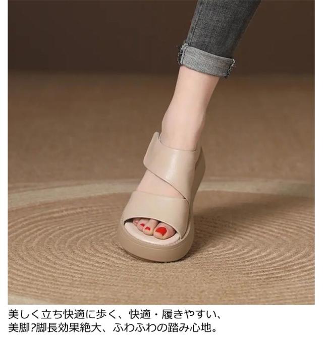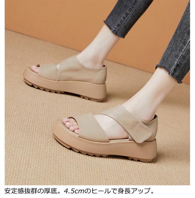厚底サンダル レディース 外反拇趾 幅広 サンダル カジュアルサンダル 楽ちん 歩きやすい 身長アップ 5cm 軽量 甲高 美脚 通気快適 疲れにくい オープントゥサンダル ベルトサンダル エレガント 女性サンダル
