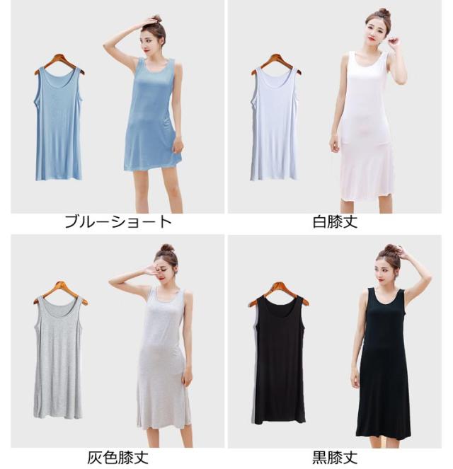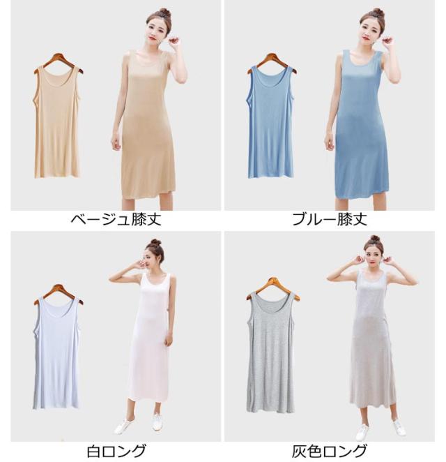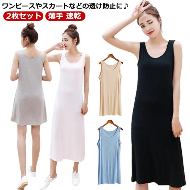 2枚セット インナー ワンピース インナーワンピース 透け防止 ペチコート タンクトップ ブラ紐隠し Aライン 大きいサイズ ロング丈 膝丈 ショート丈 無地 ストレッチ 薄手 速乾 部屋着 ノースリーブ ワンピース スリップ