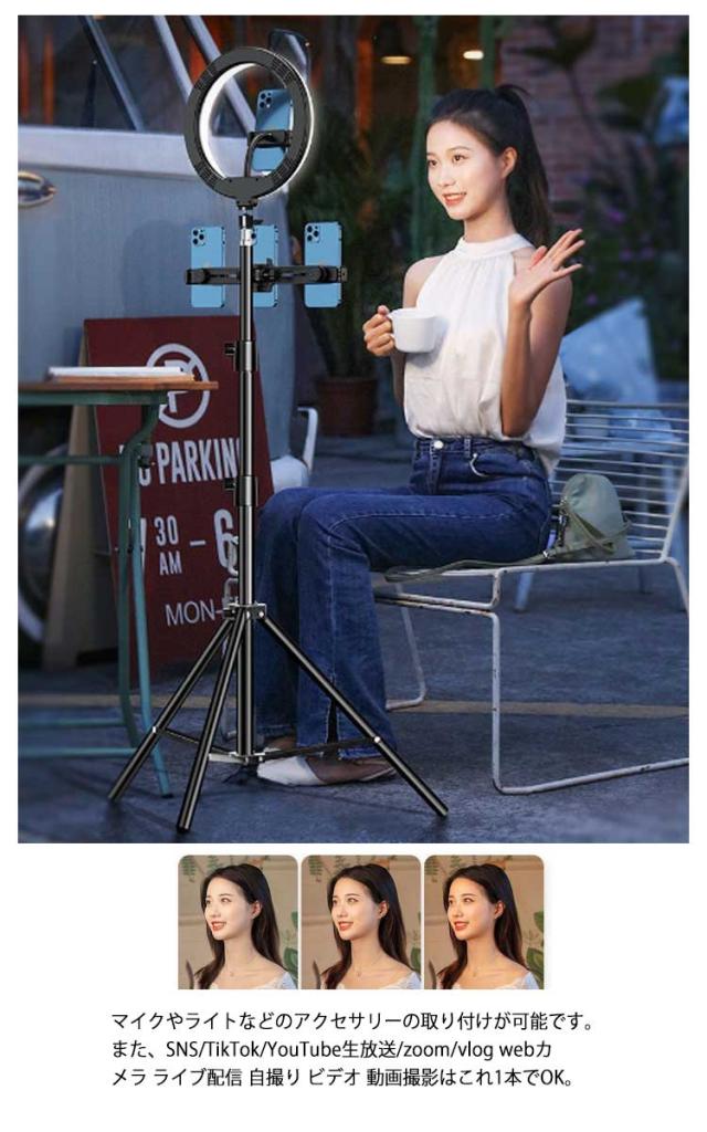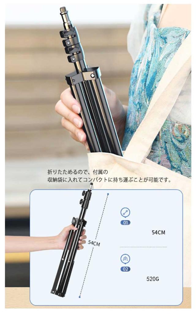 | 122cm/172cm/213cm スマホ三脚 収納袋付 角度自由自在!ホルダー部の首を360度回転させると自由なアングルで撮影が可能です。 収納袋付!折りたためるので、付属の収納袋に入れてコンパクトに持ち運ぶことが可能です。 軽量かつ丈夫な合金鋼を採用。抜群の安定性でブレない映像撮影を可能にしています。 マイクやライトなどのアクセサリーの取り付けが可能です。 【使用シーン】 集合写真や記念撮影時、運動会、撮影会、ライブ、コンサート、ピアノの発表会、ホームパーティーなど様々なシーンでお使い頂けます。 また、SNS/TikTok/YouTube生放送/zoom/vlog webカメラ ライブ配信 自撮り ビデオ 動画撮影はこれ1本でOK。 サイズは122cm/172cm/213cmの3サイズを選択可能。 詳細のサイズは下記となります。 ■122cmサイズ 最長 約122cm 収納時 約44cm ■172cmサイズ 最長 約170cm 収納時 約54cm ■213cmサイズ 最長 約210cm 収納時 約70cm ※高さ調節ネジを回すことでお好みの高さを調節することが可能です。 | |
