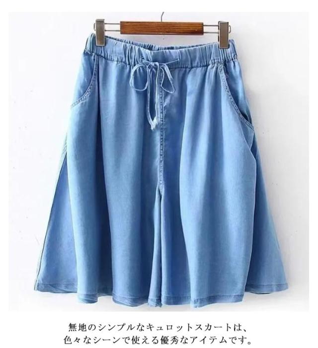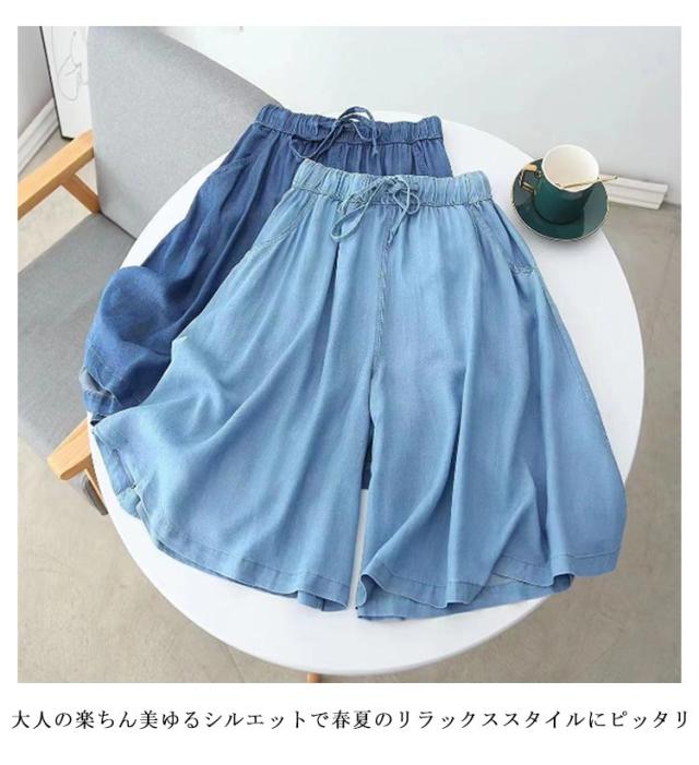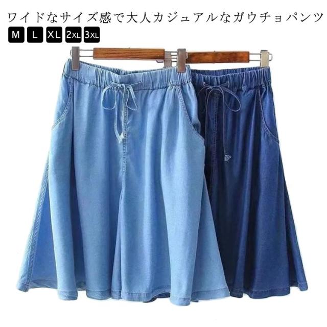 ガウチョパンツ 夏 パンツ デニム レディース スカーチョ キュロットスカート ワイドパンツ ショートパンツ 5分丈 ハーフパンツ ウエストゴム 接触冷感 きれいめ 春 薄手 冷感 ひんやり 涼しい ストレッチ フレアパンツ 母の日 プレゼント ギフト 20代 30代 送料無料