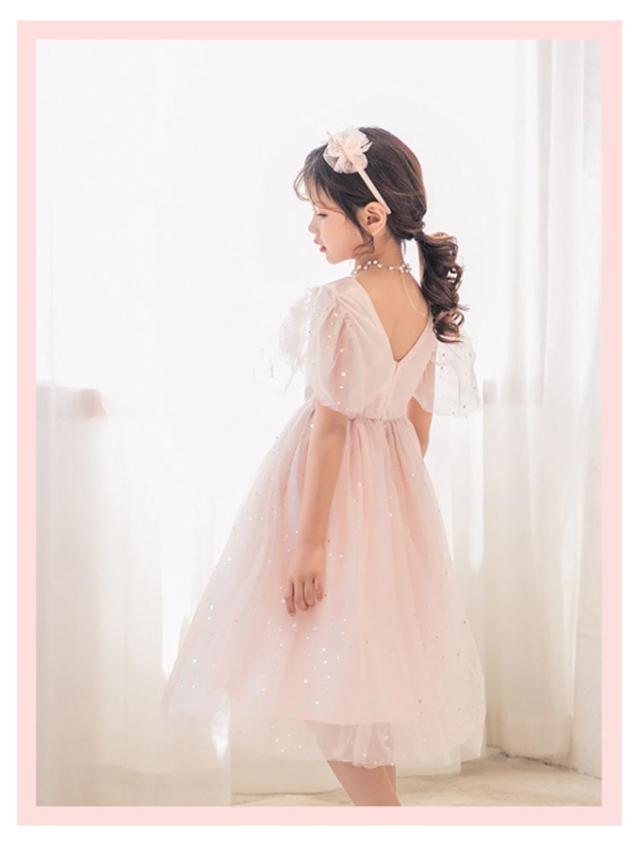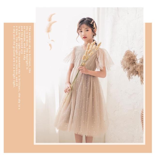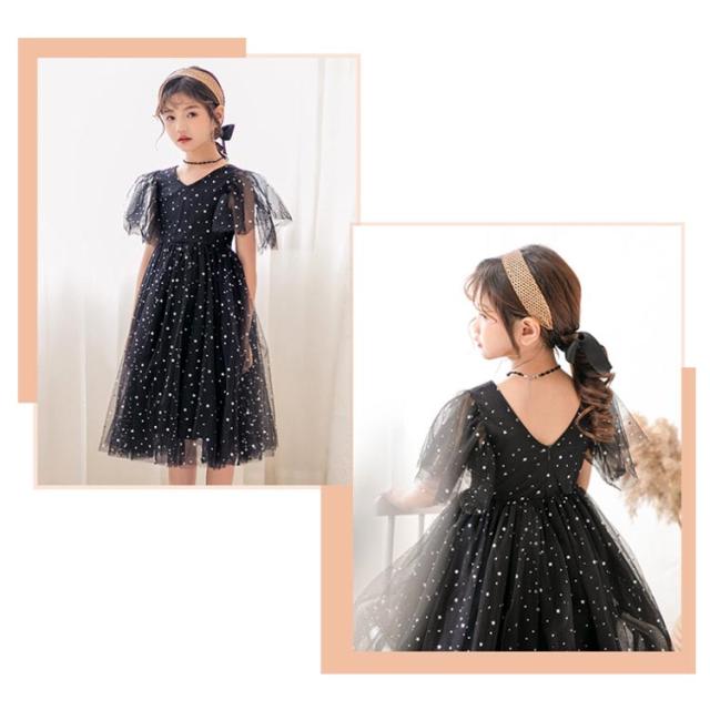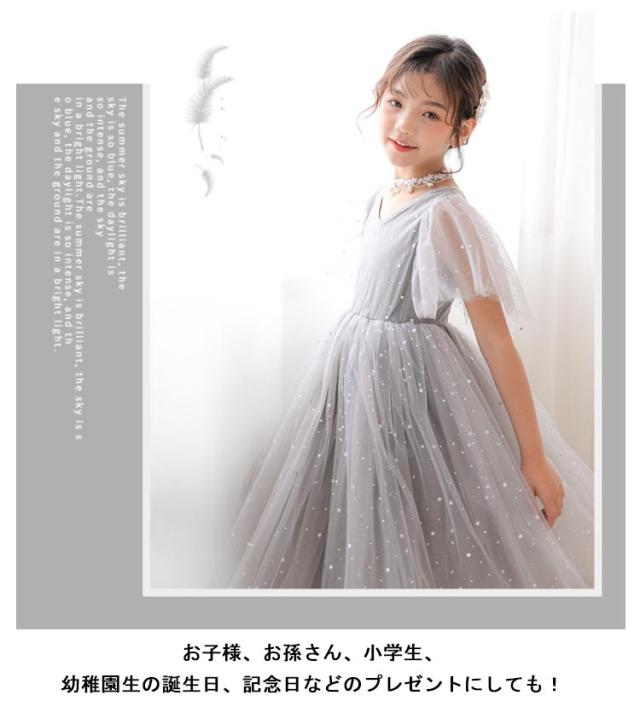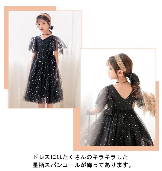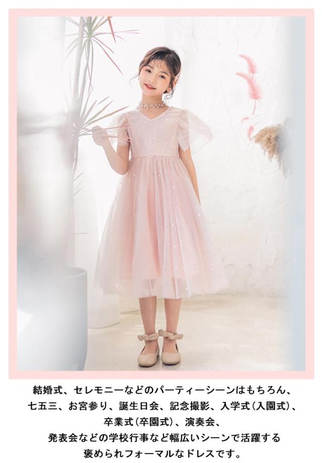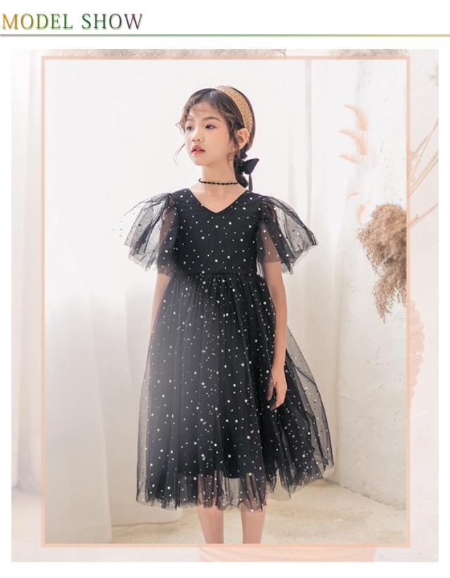 | 【子供ドレス】【110〜170cm】【5color】 ピアノ発表会や結婚式にぴったり、ふんわりチュールが華やかな子供ドレス! ドレスにはたくさんのキラキラした星柄スパンコールが飾ってあります。 Vネック、Aライン、ふんわりした半袖を採用し、シンプルで高級感溢れているすごくかわいい女の子プリンセス風のドレスです。 下半身にも多層の紗があり、フワフワして、とてもきれいです。 結婚式、セレモニーなどのパーティーシーンはもちろん、七五三、お宮参り、誕生日会、記念撮影、入学式(入園式)、卒業式(卒園式)、演奏会、発表会などの学校行事など幅広いシーンで活躍する褒められフォーマルなドレスです。 お子様、お孫さん、小学生、幼稚園生の誕生日、記念日などのプレゼントにしても! | |