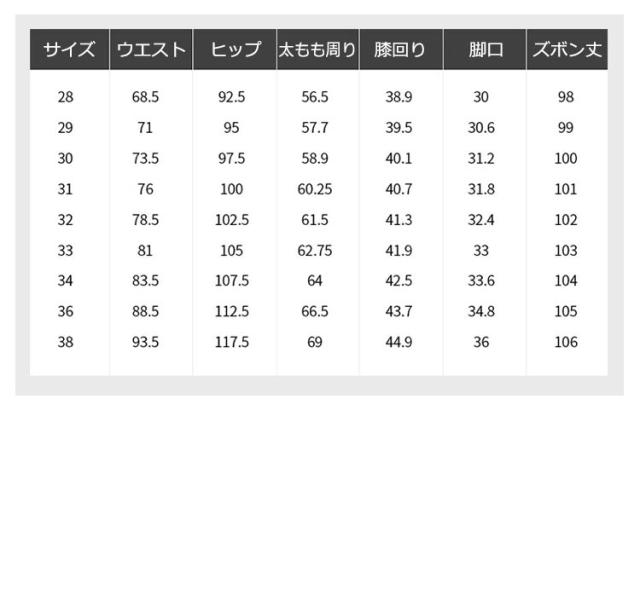 | サイズ | 28 29 30 31 32 33 34 36 38 |