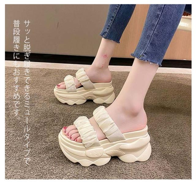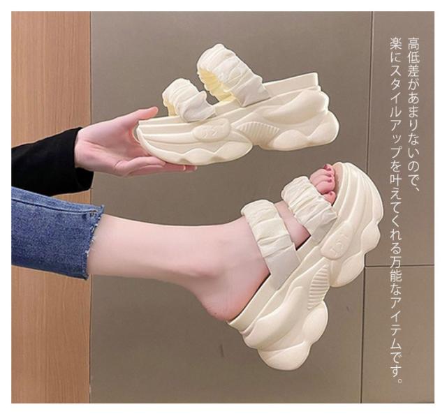 ミュール サンダル 歩きやすい 厚底サンダル ダブルベルト ギャザーベルト レディース スポーツサンダル 軽量 9cmヒール 滑りにくい かわいい おしゃれ カジュアル シンプル 夏 美脚 22.0-24.5cm