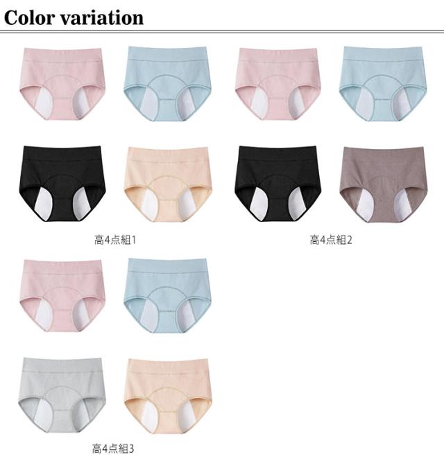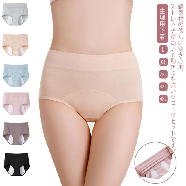 前後漏れ防止!サニタリーショーツ 4枚 大きいサイズ 生理パンツ 夜用ショーツ 生理用下着 綿 羽根つき レディース ジュニア ハイウェスト ショーツ 4枚組 生理用ショーツ 漏れない L XL 2XL 3XL 4XL