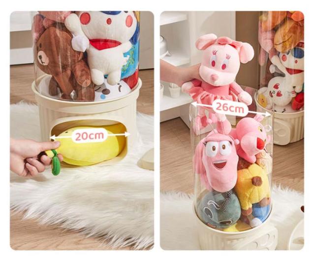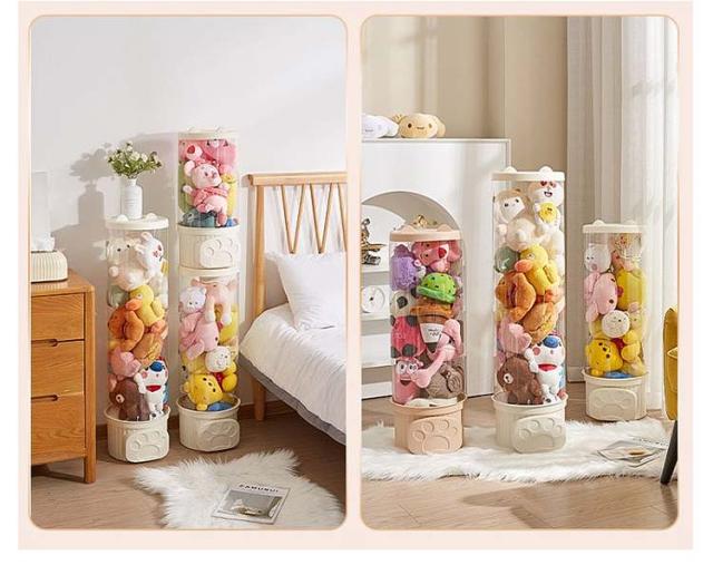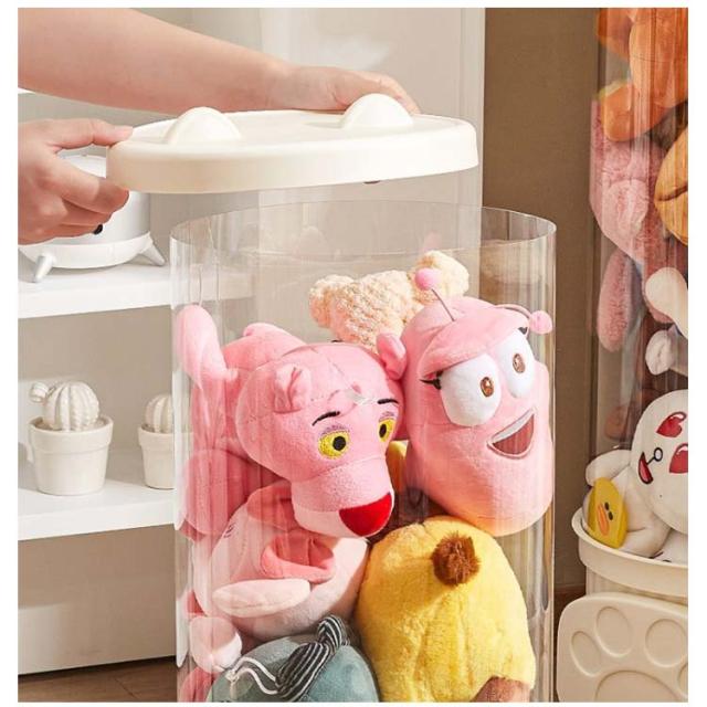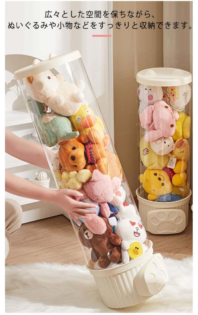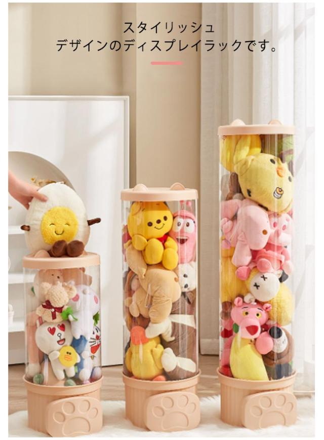 収納チューブ 収納ボックス 収納ケース ぬいぐるみ収納 おもちゃ収納ボック 円柱形 蓋付き ディスプレイケース コレクションケース 防塵 DIY 展示ボックス クリア 透明 子供部屋 組み立て式