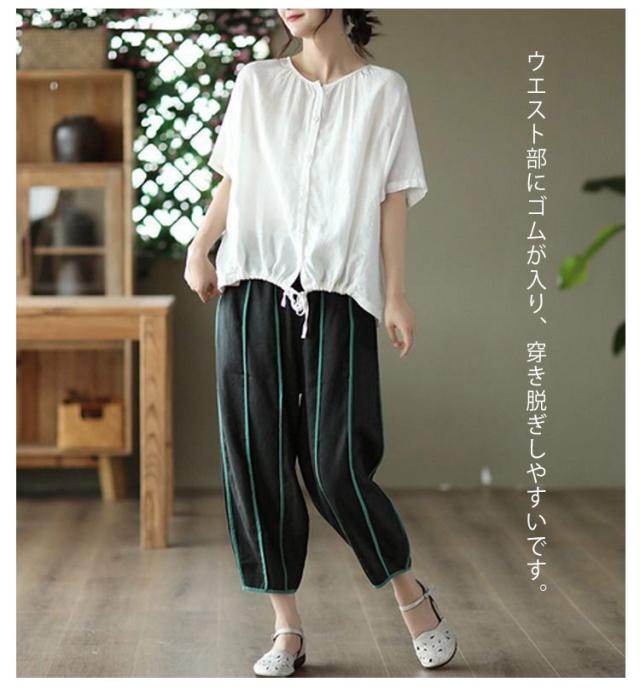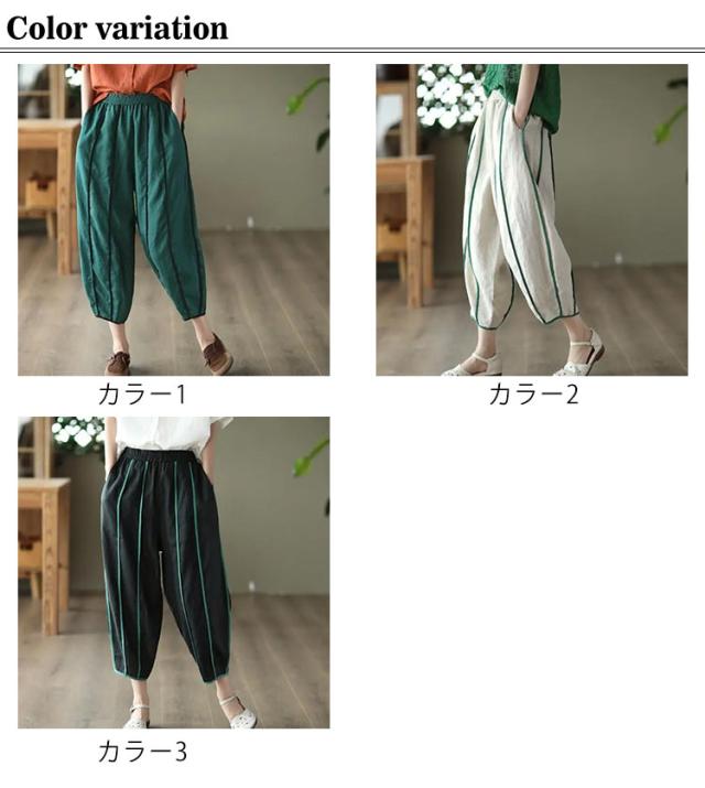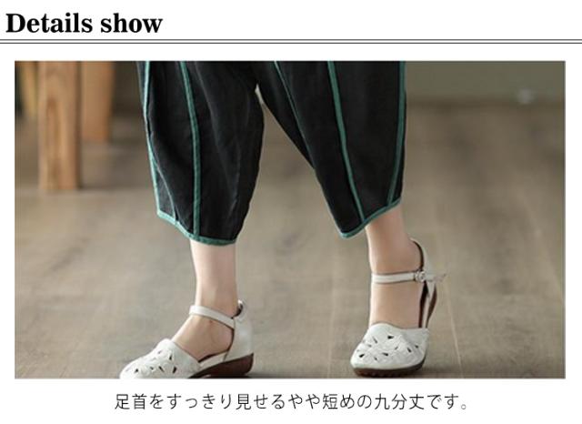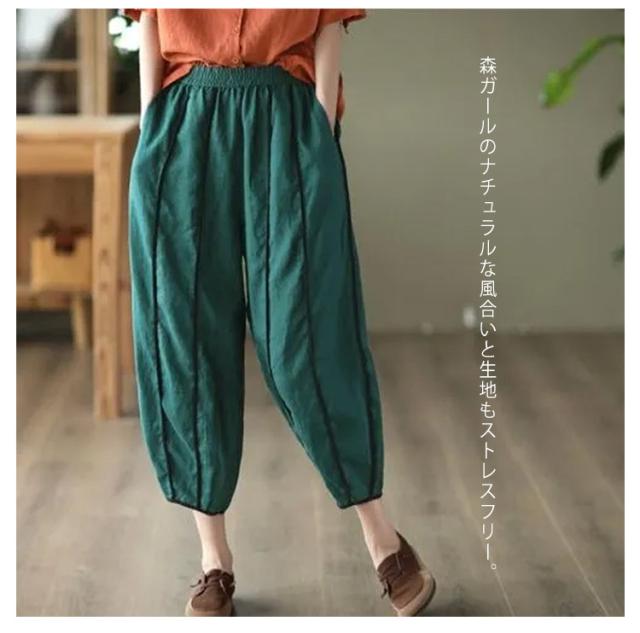 | 春夏のコーデに活躍できるサルエルパンツ。 清涼感あり、薄い素材タイプ、夏の間も着用ができるほど薄手で肌触り。 足首をすっきり見せるやや短めの九分丈です。 ウエスト部にゴムが入り、穿き脱ぎしやすいです。 森ガールのナチュラルな風合いと生地もストレスフリー。 シンプル無地デザインだからどんなトップスとも好相性。 | |