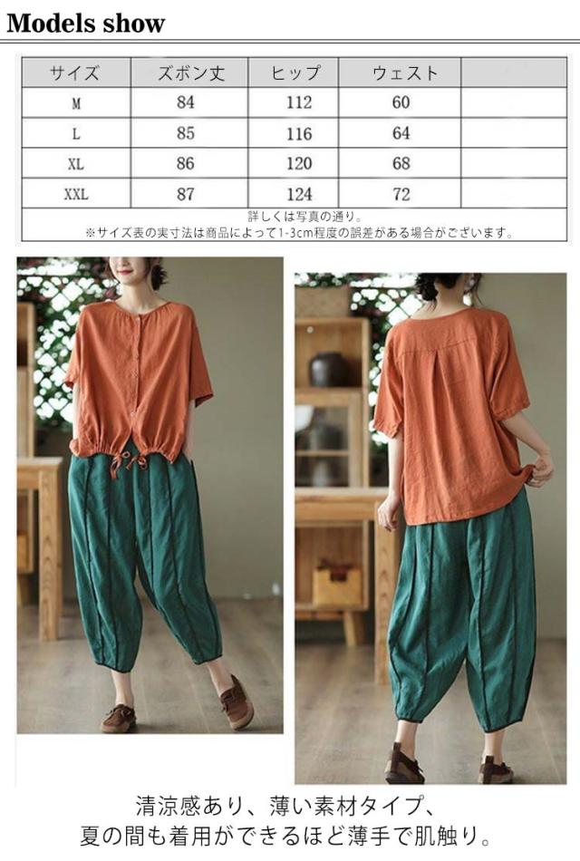送料無料 サルエルパンツ レディース バルーンパンツ 夏 涼しい ワイドパンツ コクーンパンツ コットン 春夏 カジュアルパンツ ロングパンツ 長ズボン イージーパンツ 美脚 カジュアル ナチュラル 森ガール ゆったり 薄手 おしゃれ M L XL 2XL