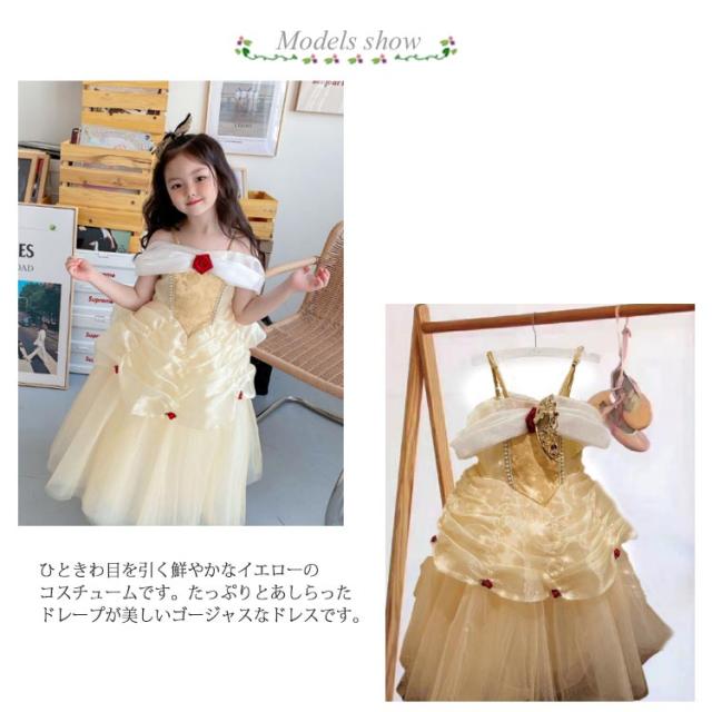 | 女の子の夢をたくさんつめこんだ本格派プリンセスドレスです。すぐに憧れの『お姫様』に変身できます。 ひときわ目を引く鮮やかなイエローのコスチュームです。たっぷりとあしらったドレープが美しいゴージャスなドレスです。 しっかりとした高級感のある生地を使用しています。質感が良く長時間着用していても快適な着心地です。 ハロウィンやお子様の特別な日の衣装にもピッタリです。誕生日や子供の日などのプレゼントにも最適。 | |