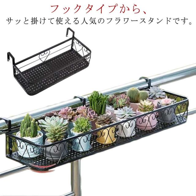 | フックタイプから、サッと掛けて使える人気のフラワースタンドです。 丈夫で耐荷重性に優れた鉄製。たくさんの植木鉢を置いても安定感があり、しっかり支えてくれます。 テラス手すり・階段手すり・柵に簡単に吊るすことができます。 また、家庭用品収納ラック、物干しラックとしても使用可能です。 室内はもちろんサビにくいため屋外での使用もおすすめです。 喫茶店・書斎・花屋・オフィス・庭などの空間に華やかな雰囲気を醸し出せます。 | |