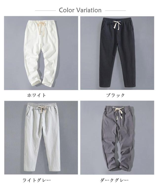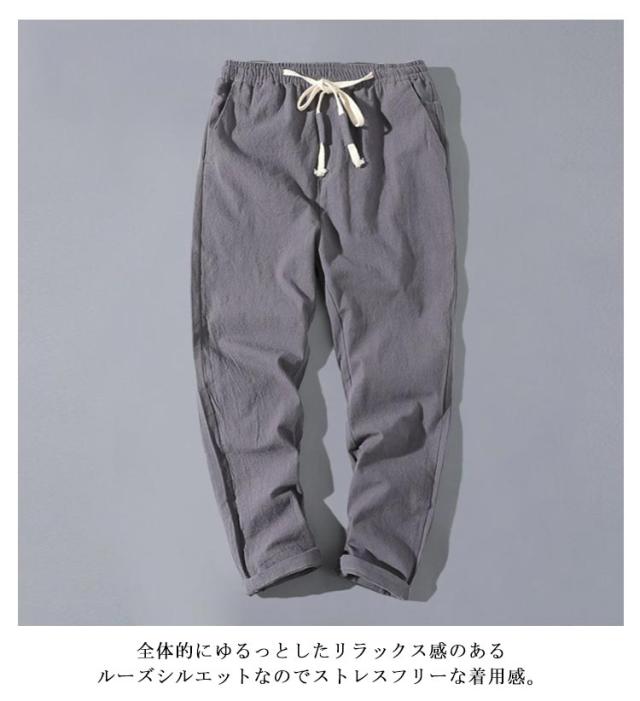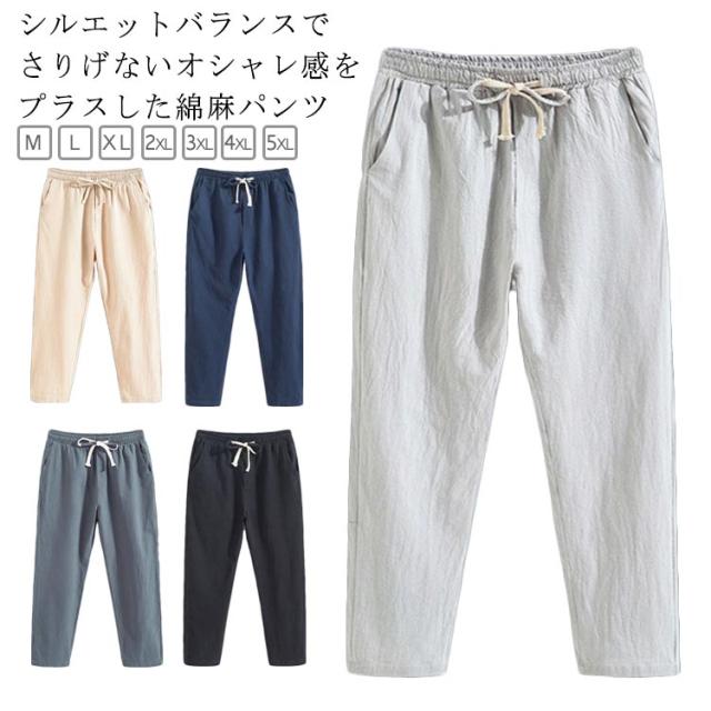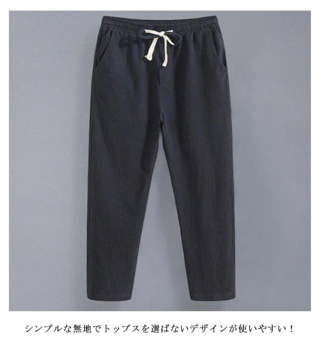 綿麻パンツ メンズ 9分丈 ボトムス リネンパンツ 綿麻 リネン パンツ 薄手 ナチュラル カジュアル 麻パン テーパードパンツ イージーパンツ ロングパンツ リラックス ルームウェア 大きいサイズ おしゃれ 無地 体型カバー 美脚 ウエストゴム 快適 プレゼント ギフト 送料無料