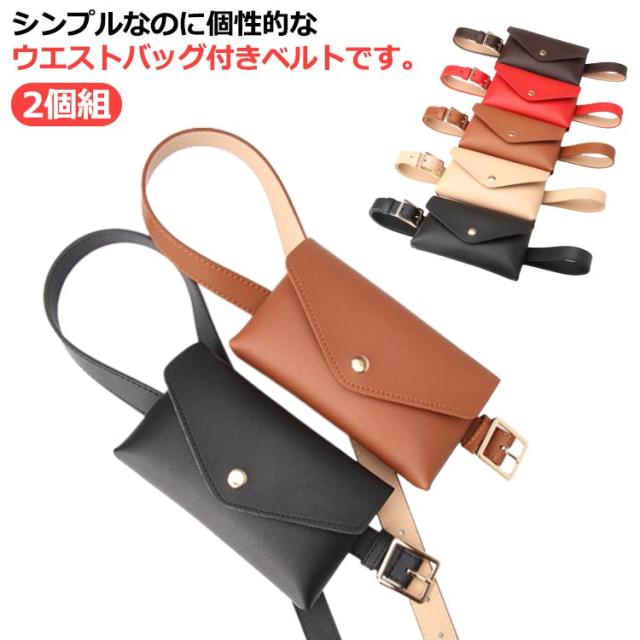 【2個組】 【送料無料】 レディース ベルト ベルトポーチ ウエストポーチ 女性 ベルトバッグ ウエストバッグ ベルトポシェット ヒップバッグ PU フェイクレザー ミニバッグ 一体型 個性的 おしゃれ かわいい