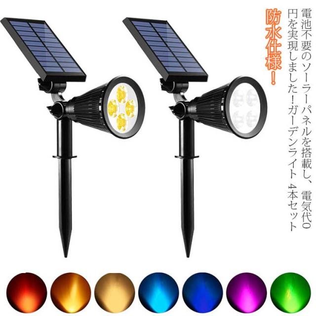 ソーラーライト 4本セット ガーデンライト LED 屋外 室外 庭 ライト センサー 明るい 防水 照明 防犯 太陽光 自動 玄関 アウトドア 埋め込み 電球色 白色 ソーラーガーデンライト スポットライト ソーラー充電 自動点灯 ソーラーガーデンライト