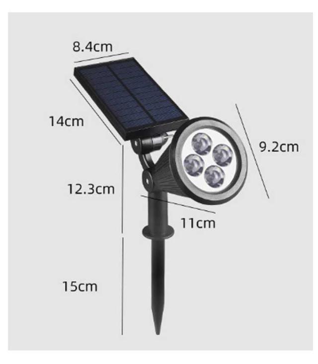 | サイズについての説明 | サイズ:重量295g バッテリー:リチウム電池DC3.7V/2400mAh 発光時間:6-12H(日照強度や季節によって誤差) IP65防水 |