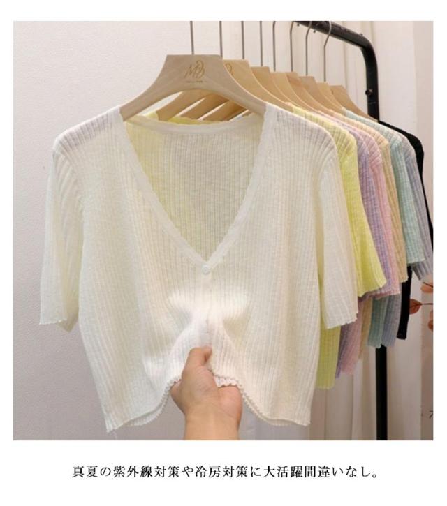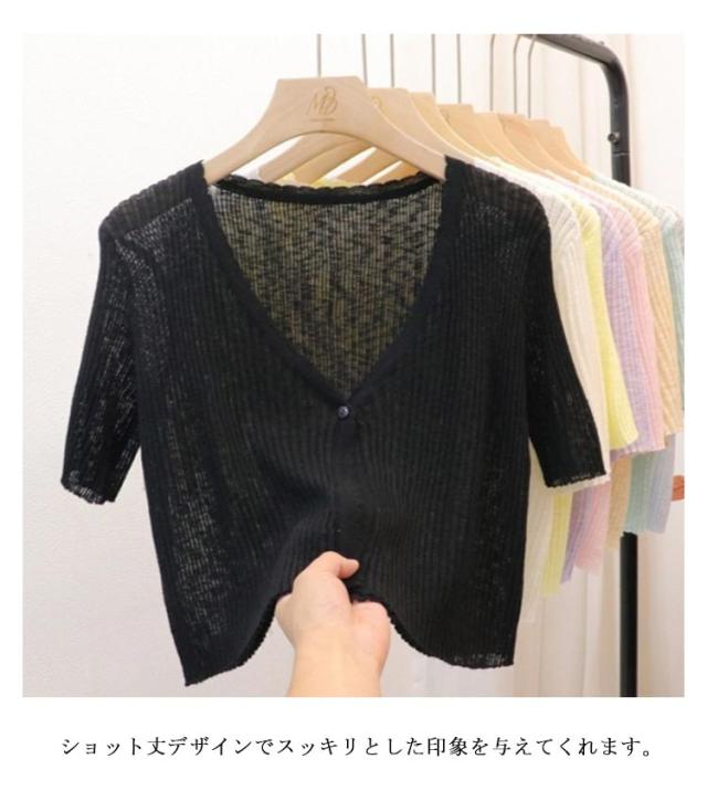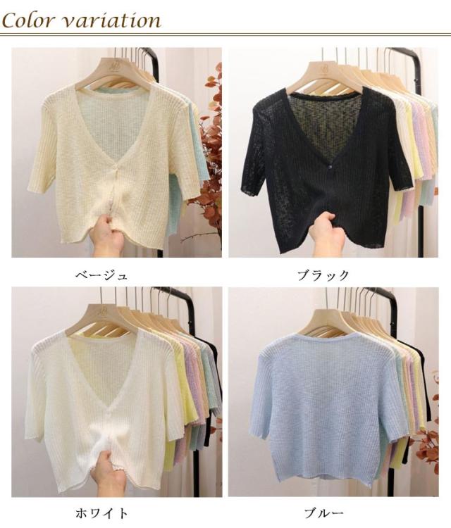 サマーカーディガン カーディガン レディース 透け感 半袖 ショート丈 透かし サマーニット 透かし編み カットワーク ボレロ 羽織り ニットカーディガン 薄手 透かし トップス 羽織り Vネック メッシュ袖 春夏 薄手 ふんわり 送料無料