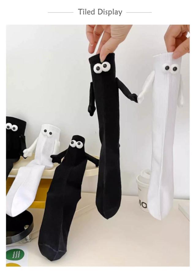 手を繋ぐ靴下 4足セット 靴下 メンズ レディース リブ ソックス マグネット 手 目 可愛い くつ下 くつした 男女兼用 韓国 クルーソックス 可愛い おもしろ 双子コーデ カップルペア フェス 文化祭 黒 白 ホワイト ブラック 送料無料