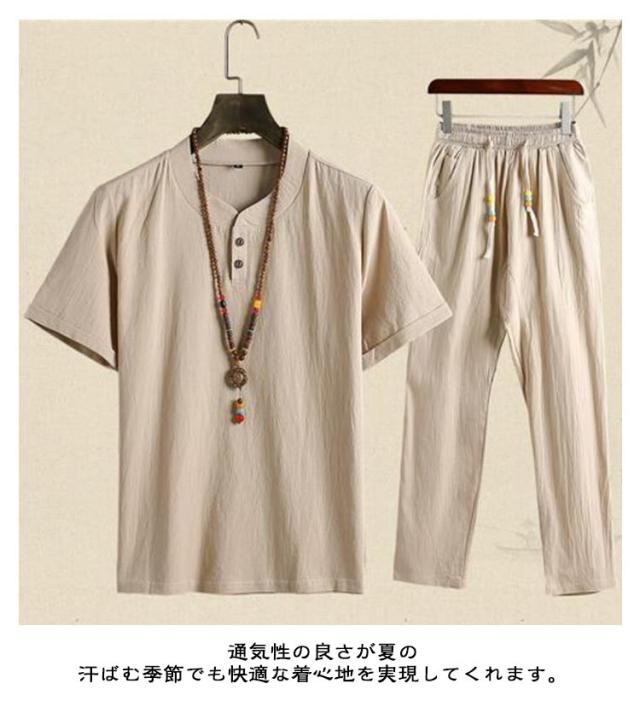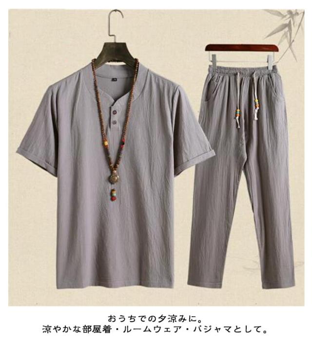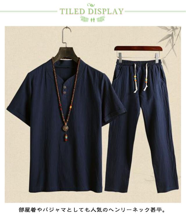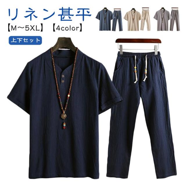 メンズ 甚平 上下セット リネン 綿麻 ヘンリーネック おしゃれ じんべい 涼しい じんべえ 男性 プレゼント 綿麻甚平 2点セット パジャマ 半袖 無地 シンプル 部屋着 夏物 大人 部屋着 綿 ルームウェア セットアップ 紳士 ロングパンツ 大きいサイズ 夏祭り 男性和服