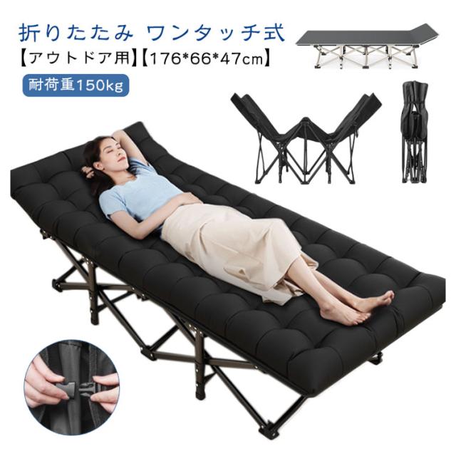 アウトドアコット ワンタッチ式 176*66*47cm 折りたたみ ベッド アウトドアベット 簡易ベッド コット アウトドア ベッド 軽量 コンパクト キャンプ ベッド キャンプコット 折りたたみベッド キャンプ用品 防災グッズ 収納袋付 レジャー 折り畳み ベット 非常用