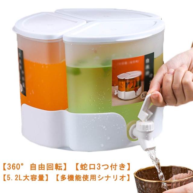 2個セット!3in1冷水筒 蛇口付き 360°回転可能 ドリンクサーバー 冷水筒 ウォーターサーバー 5.2L 回転式 北欧 ドリンクピッチャー 大容量 耐熱 耐冷 保温 保冷 冷蔵庫 冷水ポット 麦茶ポット 飲料水 冷蔵庫に入れる 家庭用 お店
