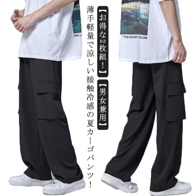 【2枚】 接触冷感 カーゴパンツ メンズ レディース 夏 涼しいパンツ ひんやり ワンドパンツ 冷感パンツ カジュアルパンツ 長ズボン ストレッチ チノパンツ イージーパンツ カーゴ パンツ ワークパンツ ズボン アイスシルクパンツ 薄手 軽量 春夏 送料無料
