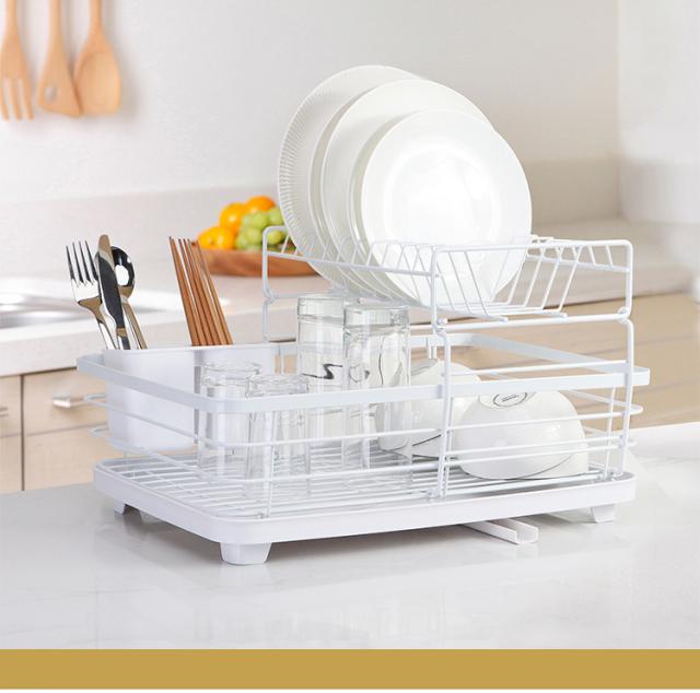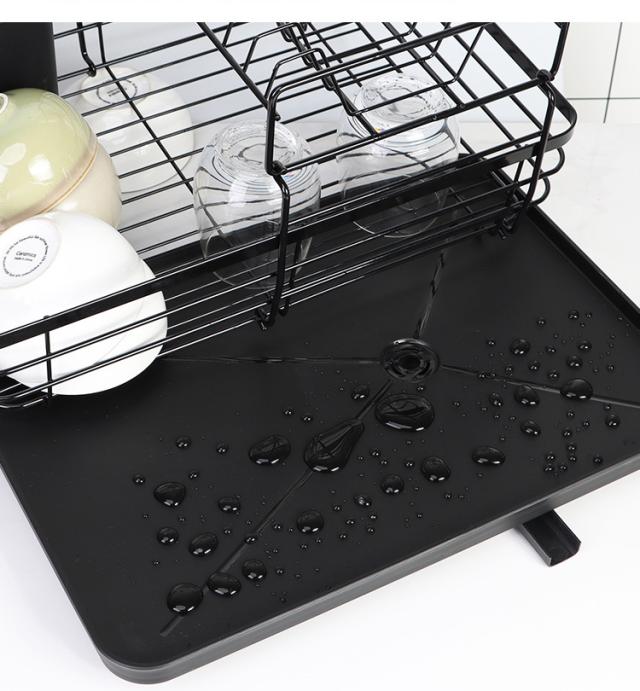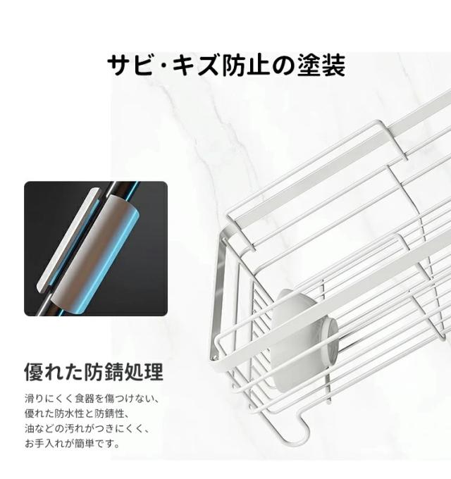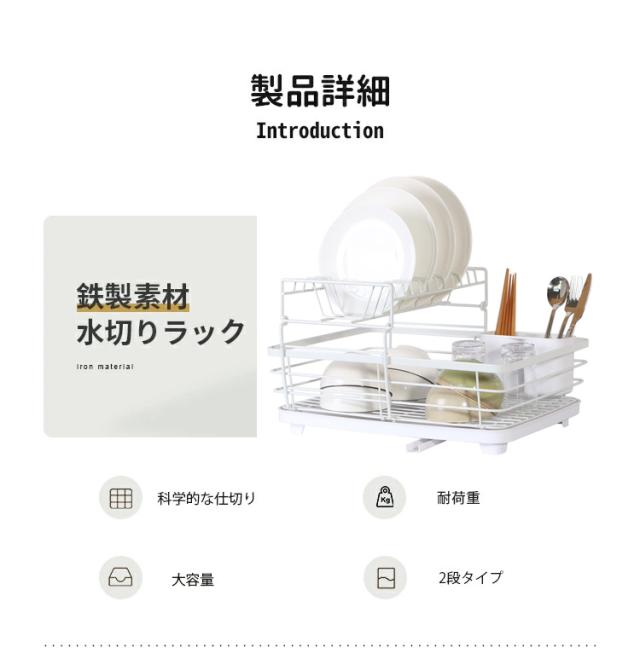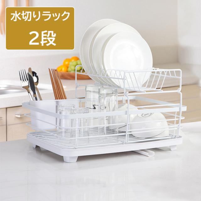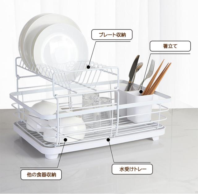 送料無料 水切りラック 2段 スリム 水切りカゴ 水切りバスケット 水きりラック ディッシュラック 二段式 大容量 2WAY 水受けトレー付き キッチン収納 シンク周り 乾燥 食器 皿 箸立て 台所用品ホルダ 収納棚 組み立て簡単