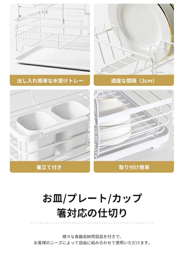 取り外し可能な2段ディッシュラック:家族の食器もしっかり置ける大容量、コンパクトで場所を取らない2段タイプです。