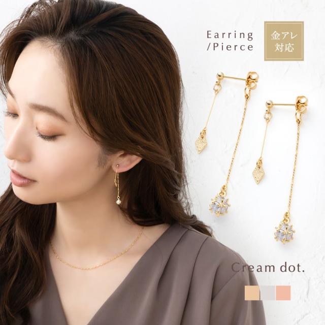 【ゆうパケット送料無料】選べる イヤリング ピアス 金属アレルギー ニッケルフリー 18kコーティング レディース 樹脂イヤリング 揺れる バックキャッチ ひし形 メタル ビジュー パヴェ 2way 大人 ゴールド シルバー ピンクゴールド