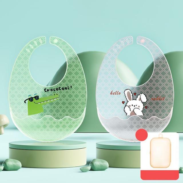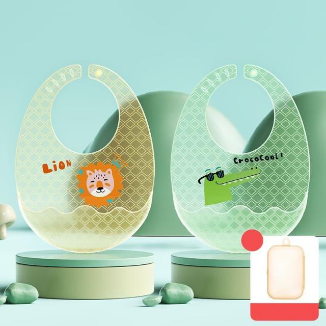 お食事エプロン 2枚セット シリコン シリコンビブ お食事スタイ よだれかけ 防水 離乳食 コンパクト ポケット付き