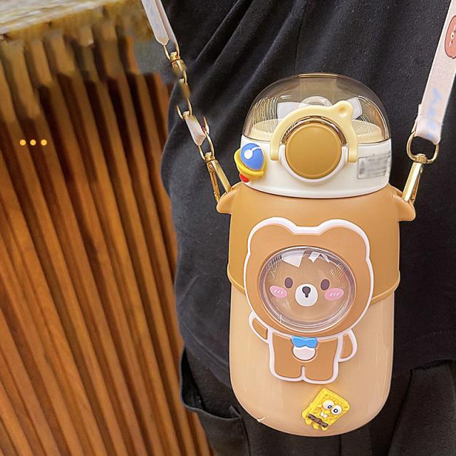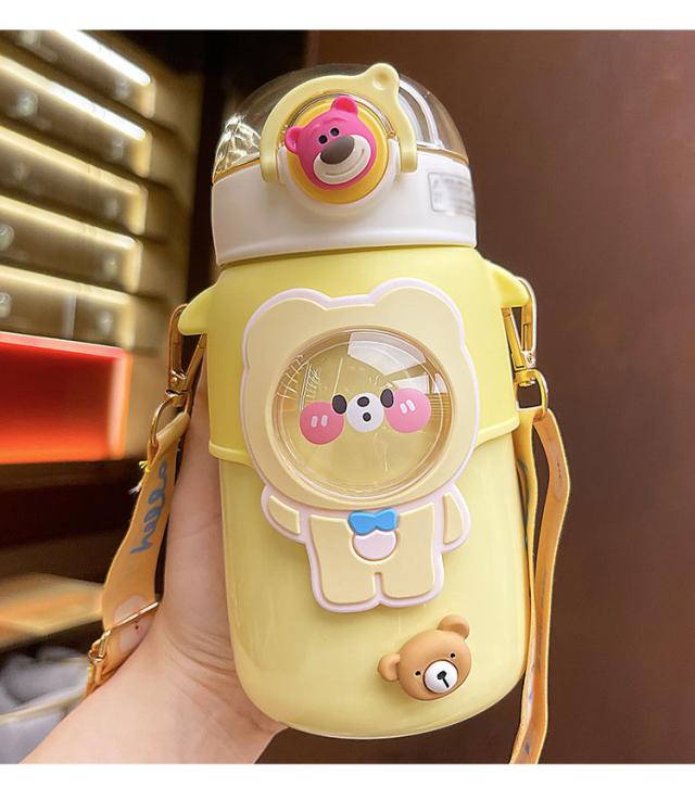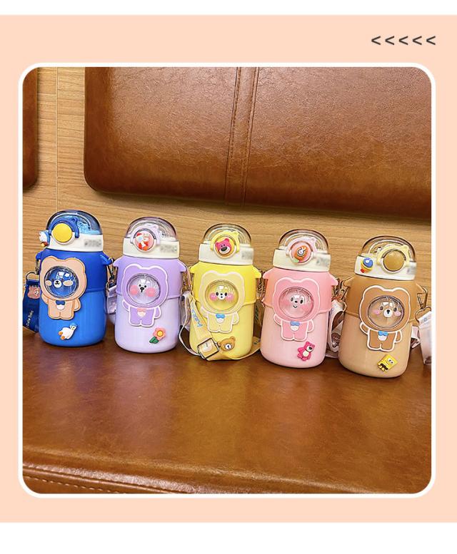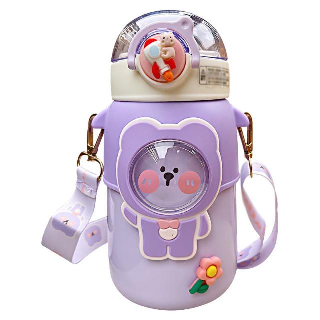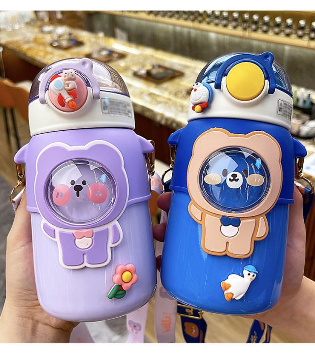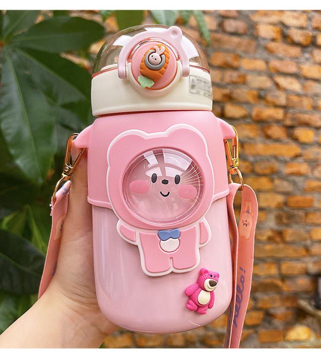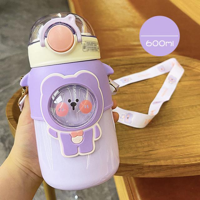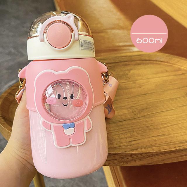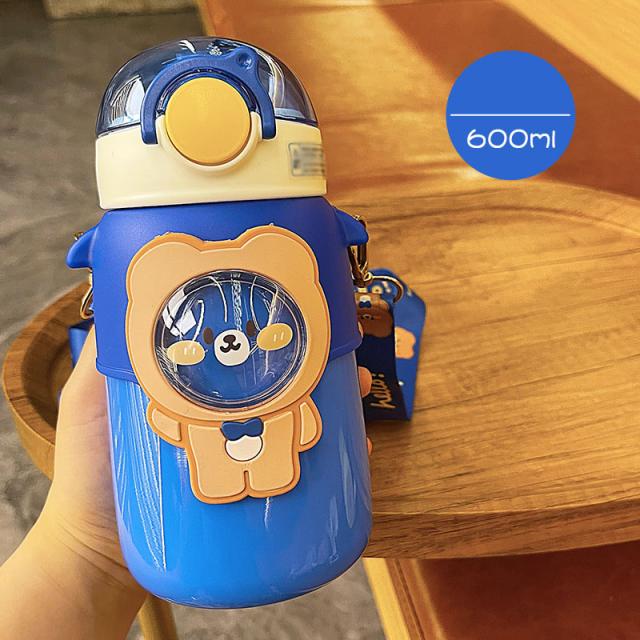 水筒 子供用 600ml ワンタッチ マグボトル ストロー ボトル 真空断熱 大容量 肩掛けベルト付き 女の子 男の子 マグボトル 可愛い アニマル柄 軽い 保育園 幼稚園 小学生 運動会 通学 遠足 旅行 プレゼント