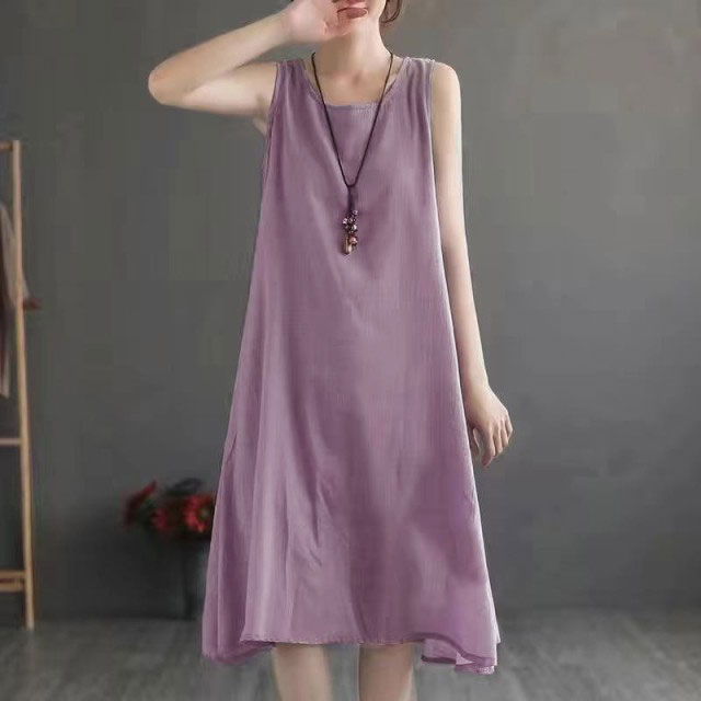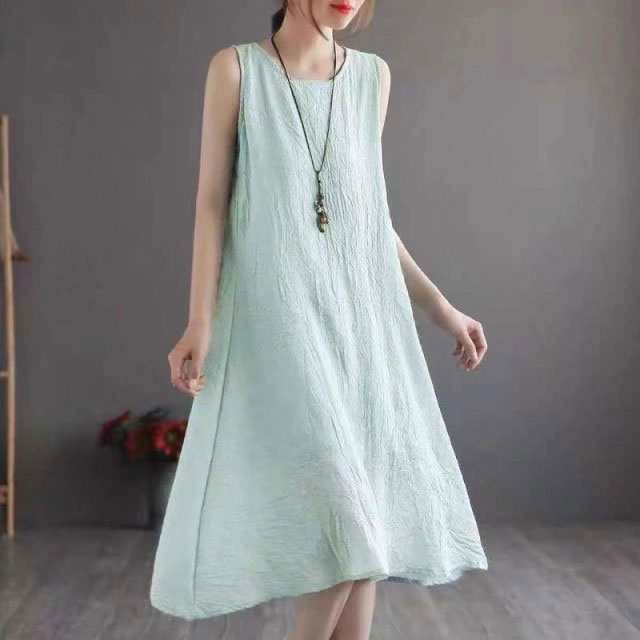ワンピース 綿麻 キャミワンピース ロング ノースリーブ Aライン 綿 コットン 麻 リネン 無地 ゆったり レディース 夏 体型カバー