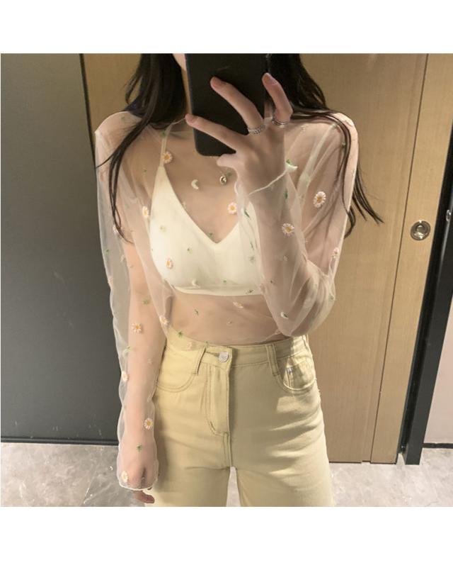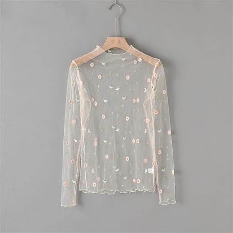 トップス シアー レースインナー レディース レイヤード 重ね着 モックネック 長袖 大人 ヒナギク柄 雛菊柄 きれいめ デイリー レース 透け感 ハイネック 20代 30代 40代