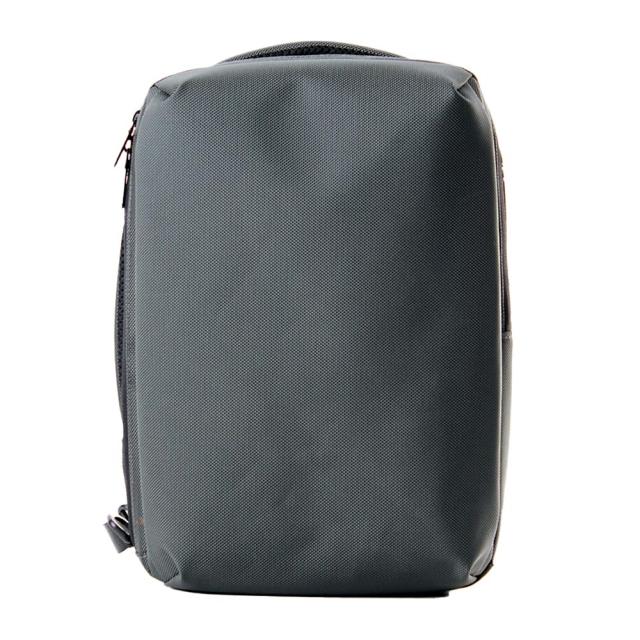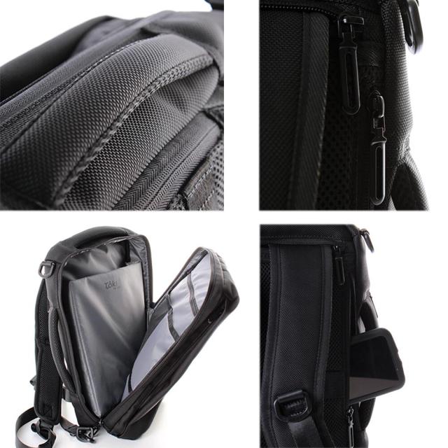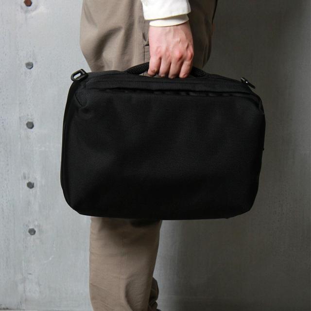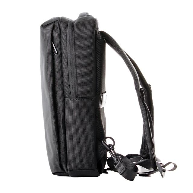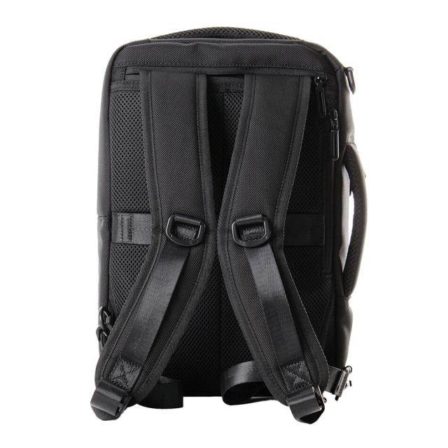 軽量撥水頑丈な1680Dのナイロン素材感を生かしたシンプルなデザインで、ブリーフとショルダー、リュックと一つの商品で様々な持ち方が出来ます。通勤など持ち方を変えたい場合などにすごく重宝します。前面のポケットはリュックとして前持ちした時に取り出しやすく便利です。メイン収納部にはオープンポケット×1、メッシュポケット×1、ファスナーポケット×1、パソコンポケット×1と充実しております。肩ベルトの収納も可能なので邪魔にならずにブリーフ持ちやショルダー持ちをしていただけます。持ち手にはしっかりとした厚みのあるウレタン素材を使用した持ち手がついており、しっかりとしているなかで、内側にはメッシュもあり柔らかくて持ち心地はとても良いです。背面側にも使いやすいファスナーポケットがございます。キャリーバーも搭載しております。見た目に相反した多機能なこちらの3WAYリュックを是非ご体感くださいませ。