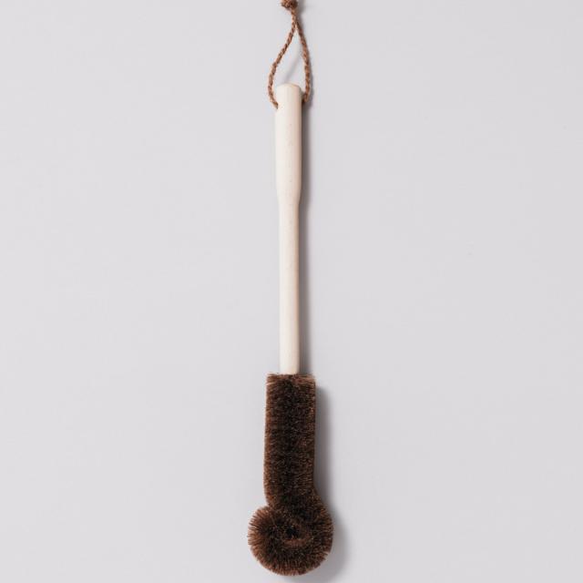 柄付きのたわしです。深くて洗いづらいポットや水筒、グラスやタンブラーなどのお手入れに最適で、落ちにくい茶渋もしっかりとかき出せます。