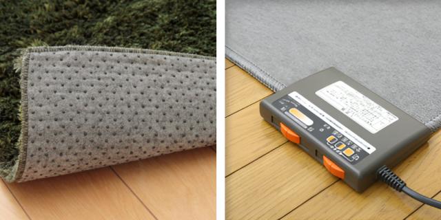 裏面は不織布貼りでドットの滑り止め加工が施されており、滑りにくくなっています。また、ホットカーペットや床暖房に対応しています。