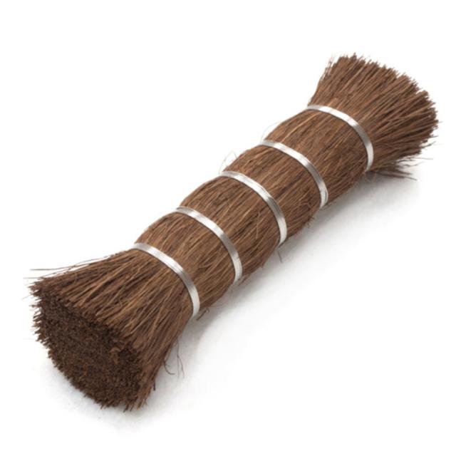 ステンレス線を使い「綴り」と呼ばれる技法で棕櫚の繊維を束ねた、昔ながらのささらです。繊維の一本ずつが点となって汚れをかき出すたわしと違い、ささらは面で汚れをこすり落とします。隅を洗うのに最適で、卵焼器の四隅までしっかり洗うことができます。また、コンロ周りのお掃除にも使いやすいです。