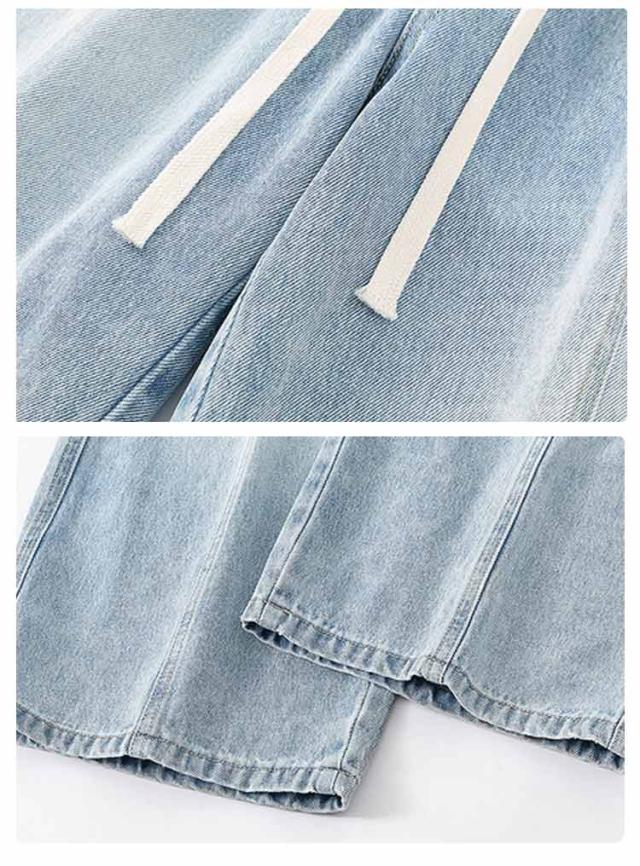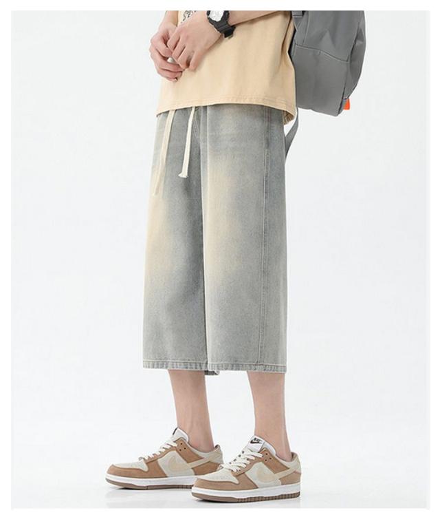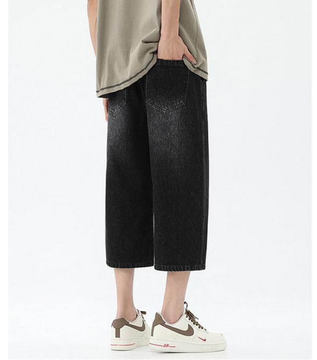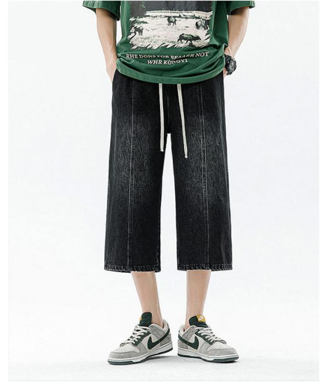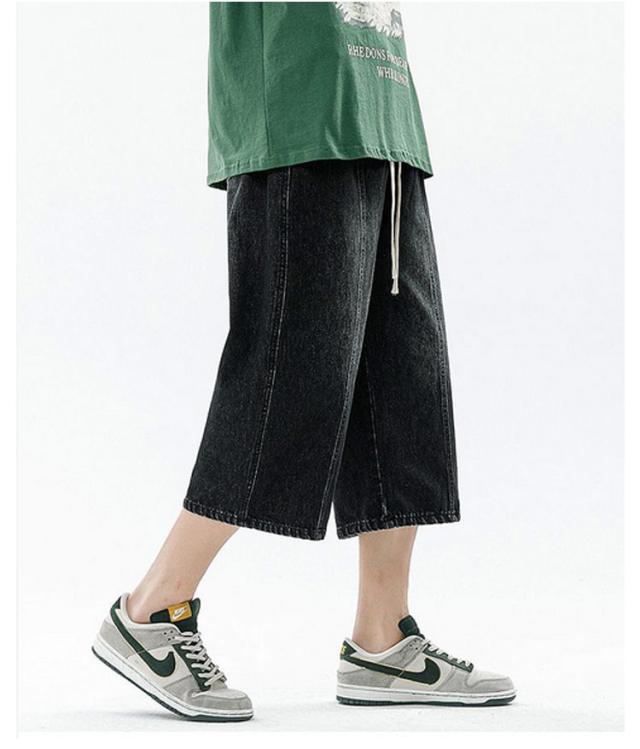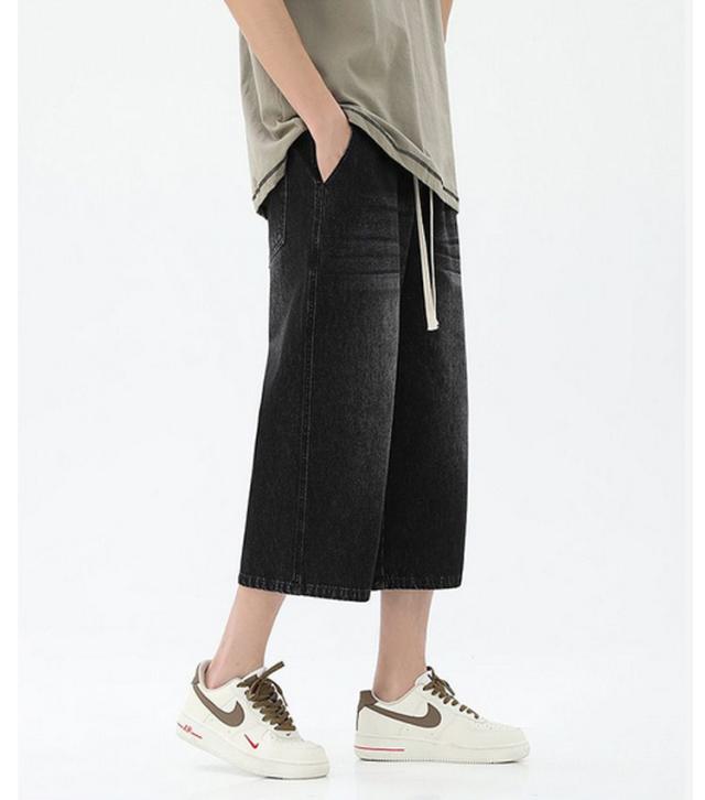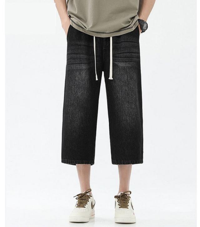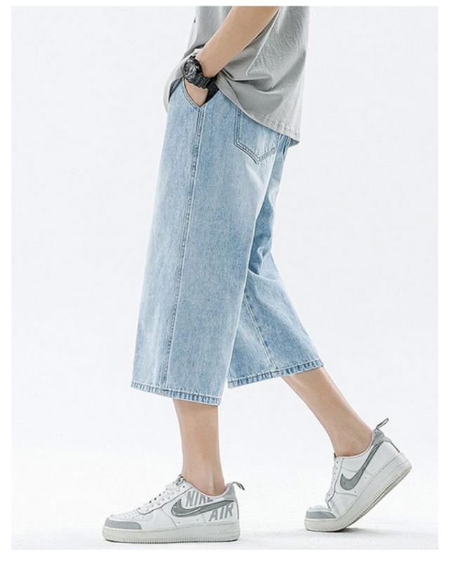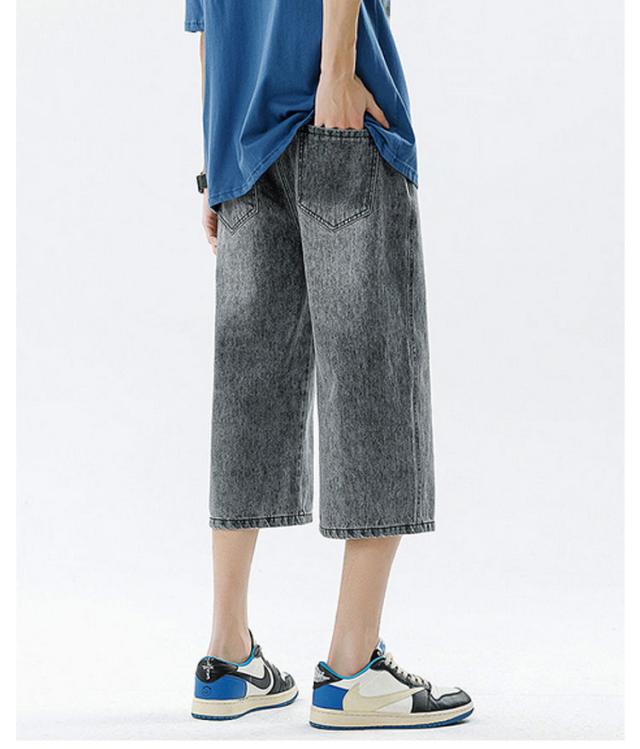 デニムパンツ ワイドパンツ メンズ 7分丈 バギーパンツ カジュアル ストレート 春夏 秋 ジーンズ おしゃれ 半ズボン ジーパン 大きいサイズ 太め ゆったり 体型カバー デニムパンツ イージーパンツ ゴムウエスト クロップドパンツ 快適 ギフト 送料無料