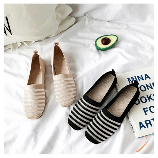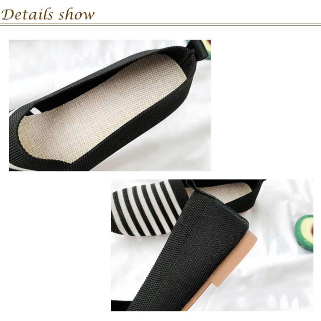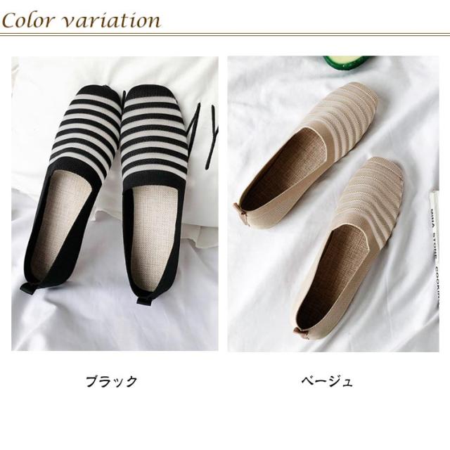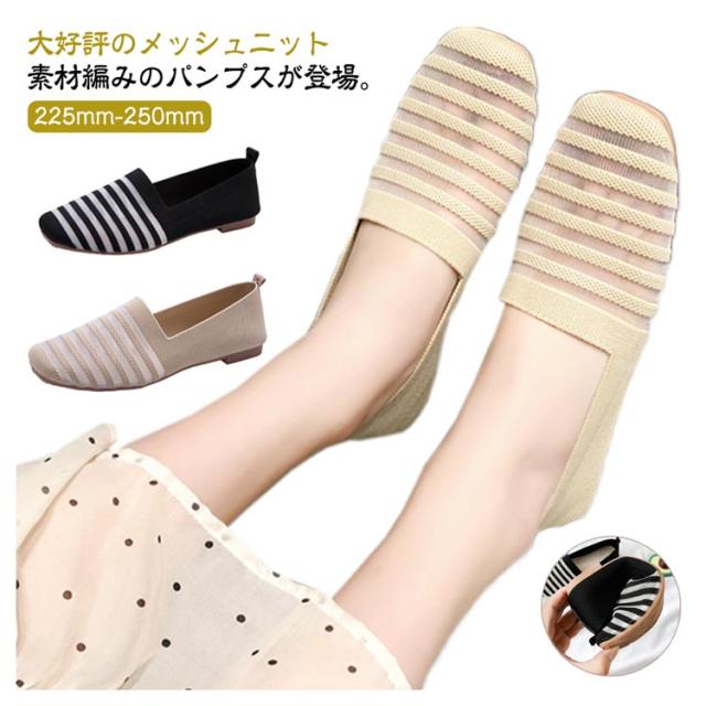 ニットパンプス バレエシューズ 携帯スリッパ 送料無料 フラットシューズ レディース パンプス スリッポン ローヒール ペタンコ ボーダー 折りたたみ 透け感 春夏 秋