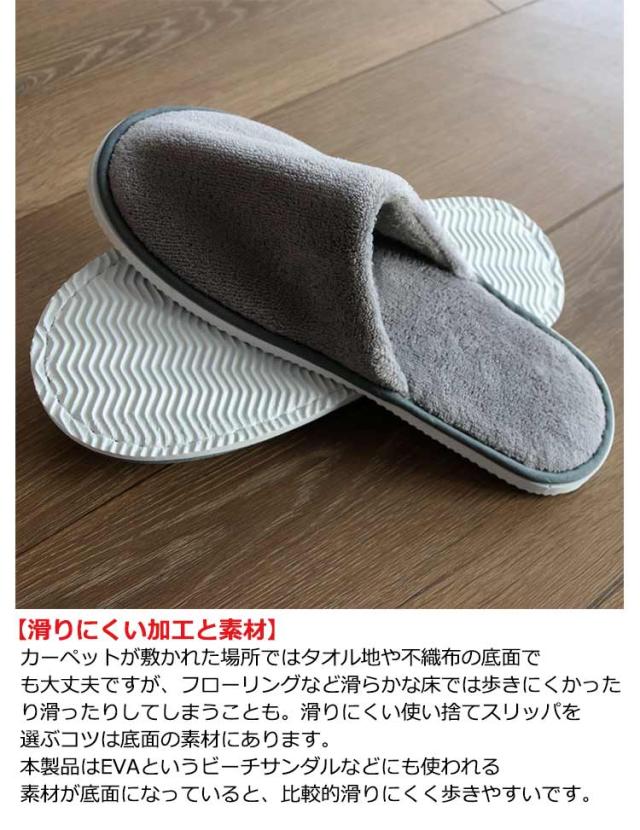 | 底はEVAクッションを採用、肌にやさしいベルベット生地を使用した男女兼用使い捨てスリッパ。【個包装】 【高級感のあるベルベット生地】ふわふわで肌触りのよい生地を採用し、快適な履き心地と通気性のよさを両立しています。抗菌防臭効果もあり清潔に使用できます。高級感ある見た目のおしゃれな使い捨てスリッパ。来客用のルームシューズとして使用するのにも最適です。 【洗濯でき、個包装】 汚れても簡単に洗えて繰り返しの使用も可能。 1足ずつ個包装されているため衛生面でも安心して保管でき、持ち運びにも便利、災害時や旅行などに役立ちます。 【高級ホテル仕様】 上質な素材と丁寧な縫製で作られていて、数日間繰り返し使えるところが魅力です。 ソールは厚いEVA素材を採用し、クッション性や履き心地は抜群です。長時間履いても疲れにくい。 使い捨てスリッパの中には紙製など底が薄いものが多いです、底が薄いものは短時間の使用や簡易的な用途であればよいですが、旅行やホテル、飛行機のフライトなどで長時間履いていると疲れてしまうことも。足の疲れを少しでも減らしたいなら、弊店のこの厚みのある使い捨てスリッパがおすすめ、履き心地抜群です。 【滑りにくい加工と素材】 カーペットが敷かれた場所ではタオル地や不織布の底面でも大丈夫ですが、フローリングなど滑らかな床では歩きにくかったり滑ったりしてしまうことも。滑りにくい使い捨てスリッパを選ぶコツは底面の素材にあります。本製品はEVAというビーチサンダルなどにも使われる素材が底面になっていると、比較的滑りにくく歩きやすいです。 【男女兼用】実用性とデザインに優れた柔らかいスリッパ、使い捨てには見えないおしゃれな色合いのベルベット地製、男女問わず使えます。 | |