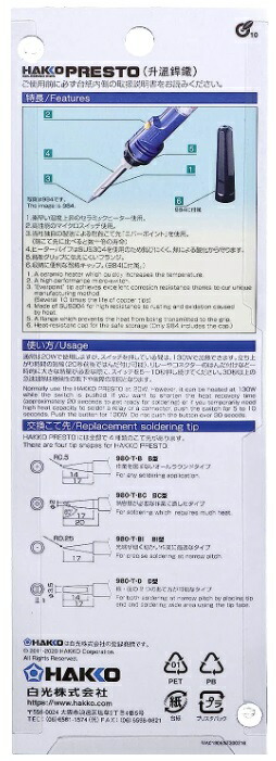 白光 PRESTO ストレートタイプ 984-01 急速加熱はんだこて セラミックヒータータイプ HAKKO ’