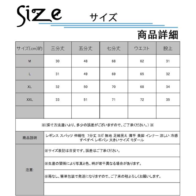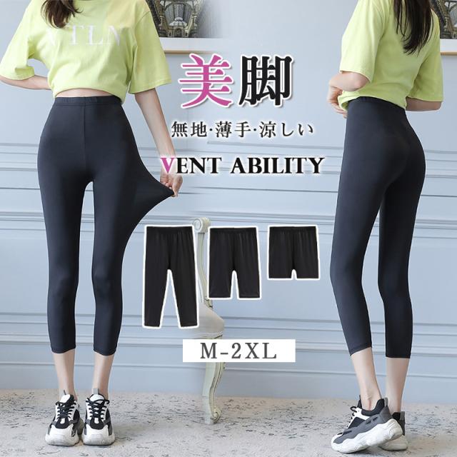 レギンス スパッツ 伸縮性 7分丈 ヨガ 無地 足細見え 薄手 美脚 インナー 涼しい 冷感 すべすべ レギパン 大きいサイズ モ